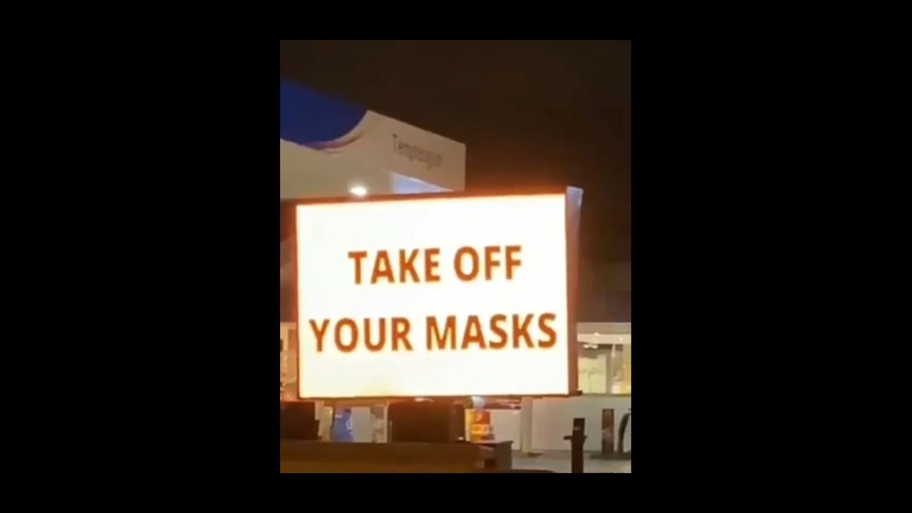 Electric Billboard: "UNTESTED COVID VACCINE HAS SIGNIFICANT SIDE EFFECTS"