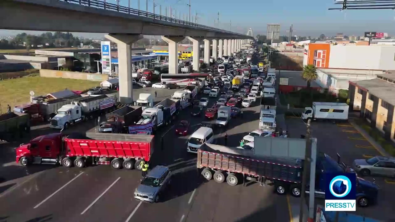 Truckers and farmers block part of the Mexico-US border commercial bridge