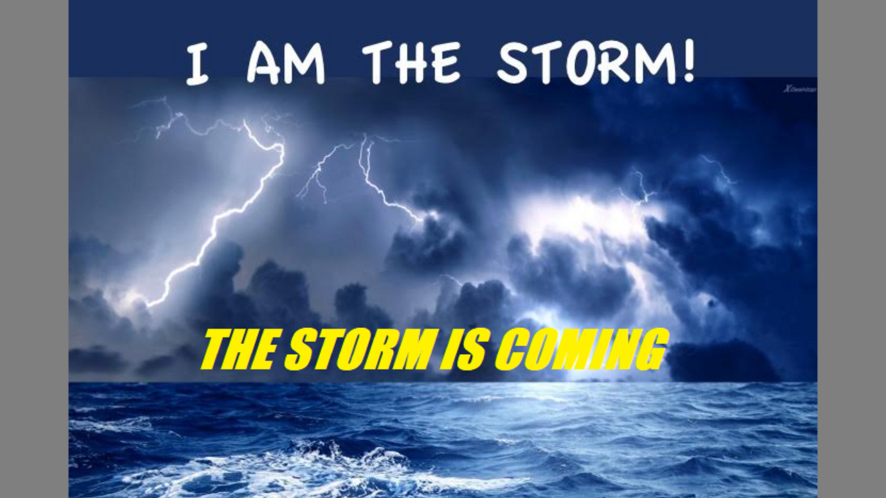 A storm is coming. I Am The Storm! Fear Me! Worship Me! Do not delay! I Am coming with a shout to bring My people out! I will delay no longer. I Am has seen the atrocities that mankind has done & I will allow it no longer! It is done! The sin of man is putrid to my nostrils! I will expose the sin & the sinners! The earth cries out to Me! I will rescue my own then I will pour out my wrath! Repent! For the time is at hand! Repent! Do not delay!! Time is very short!!! You do not know the hour in which you live! I come quickly! I Am the Storm!! Fear Me! Worship Me!! Only I can save you! You must come to Me and ask! Spend time with Me! I long for you to return to your true love! You belong to me, but you must choose the light! Choose Me! It is your choice!! Do not allow the enemy to deceive you! Come to me with all of your questions! I will answer them all!