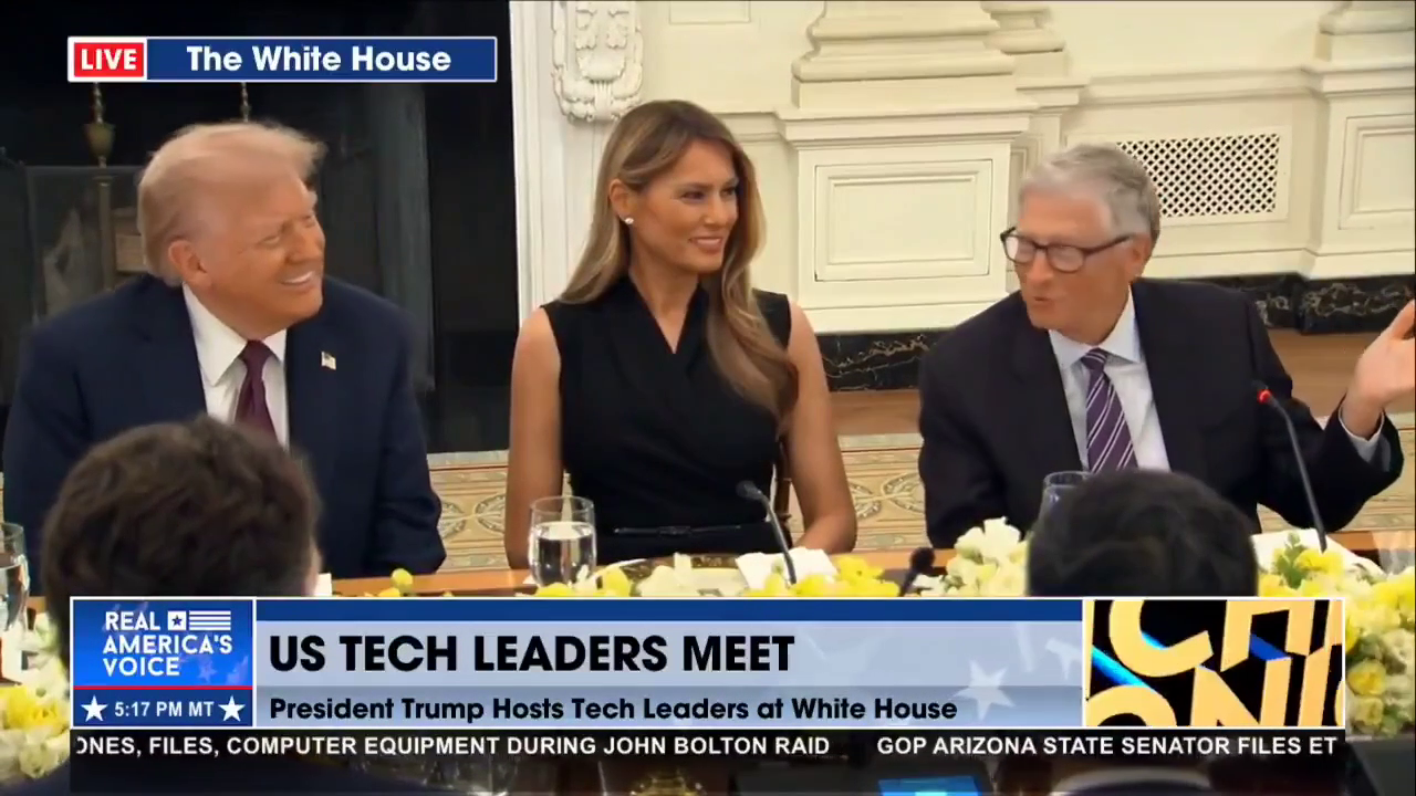 Bill Gates, alongside President Trump and Melania, said he is in talks with Trump about vaccines and gene editing.