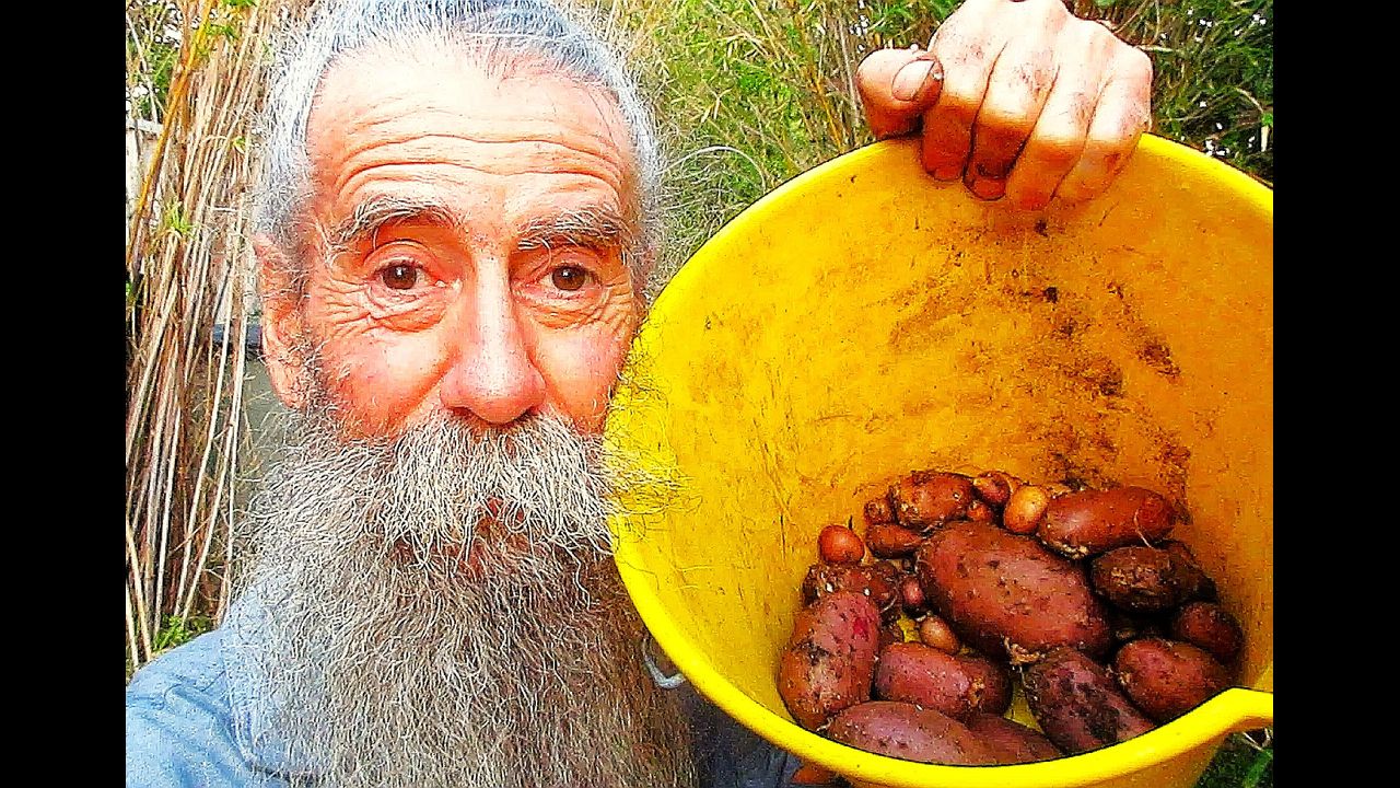I harvested these Royal Blue potatoes from the 23rd out of 44 50 cm black tubs late today, and they will be a substantial portion of tonight’s vittles, despite the warts all over them.