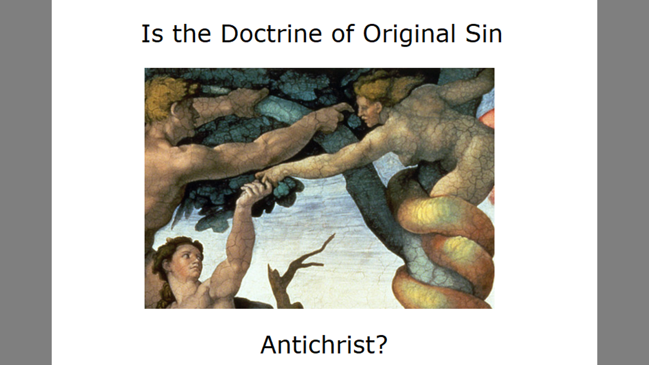Secondly, you have to (a) admit then that Jesus inherited this sin through his flesh, thus denying that he is Messiah since how can someone who is sinful save you--classifying you as antichrist for believing this, or (b) claim that Jesus avoided this sin by not coming in the flesh or in some other kind of flesh--also making you antichrist. (See the definition of "antichrist" laid down in 1 John.) The only way to avoid being antichrist is to confess (a) Jesus is Christ and (b) that He came in the flesh. And you can only do this by rejecting the false doctrine of original sin.