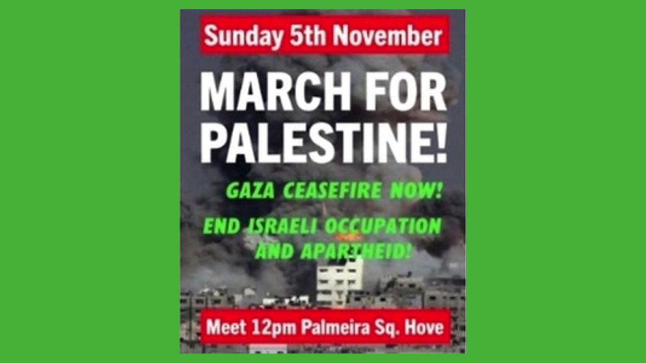 Sunday 5th November 2023 peace march in Brighton & Hove calling for a ceasefire in Palestine.