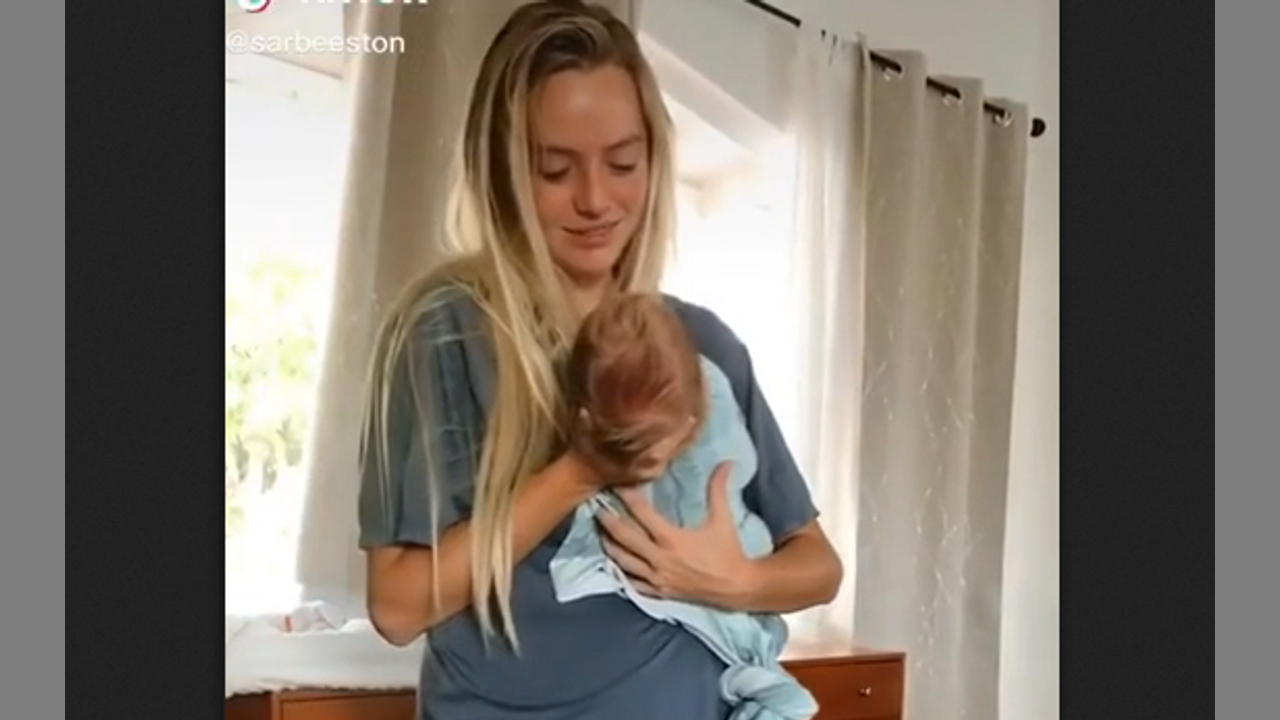 She's happy to be a new mom - Look at her face glow.