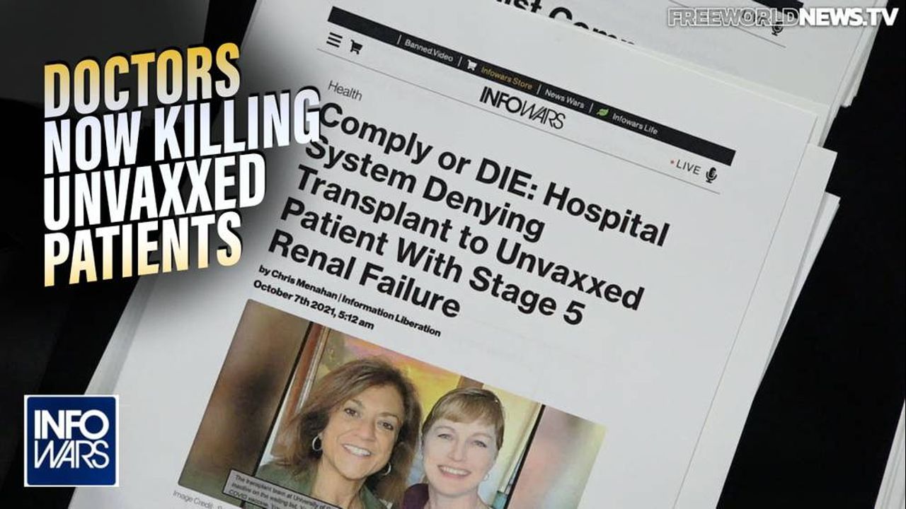 Thomas Renz of http://renz-law.com joins The Alex Jones Show to break down the horrifying story of doctors now refusing to treat critical patients who haven't taken the COVID jab. Read more here: https://www.infowars.com/posts/comply-or-die-hospital-system-denying-transplant-to-unvaxxed-patient-with-stage-5-renal-failure/