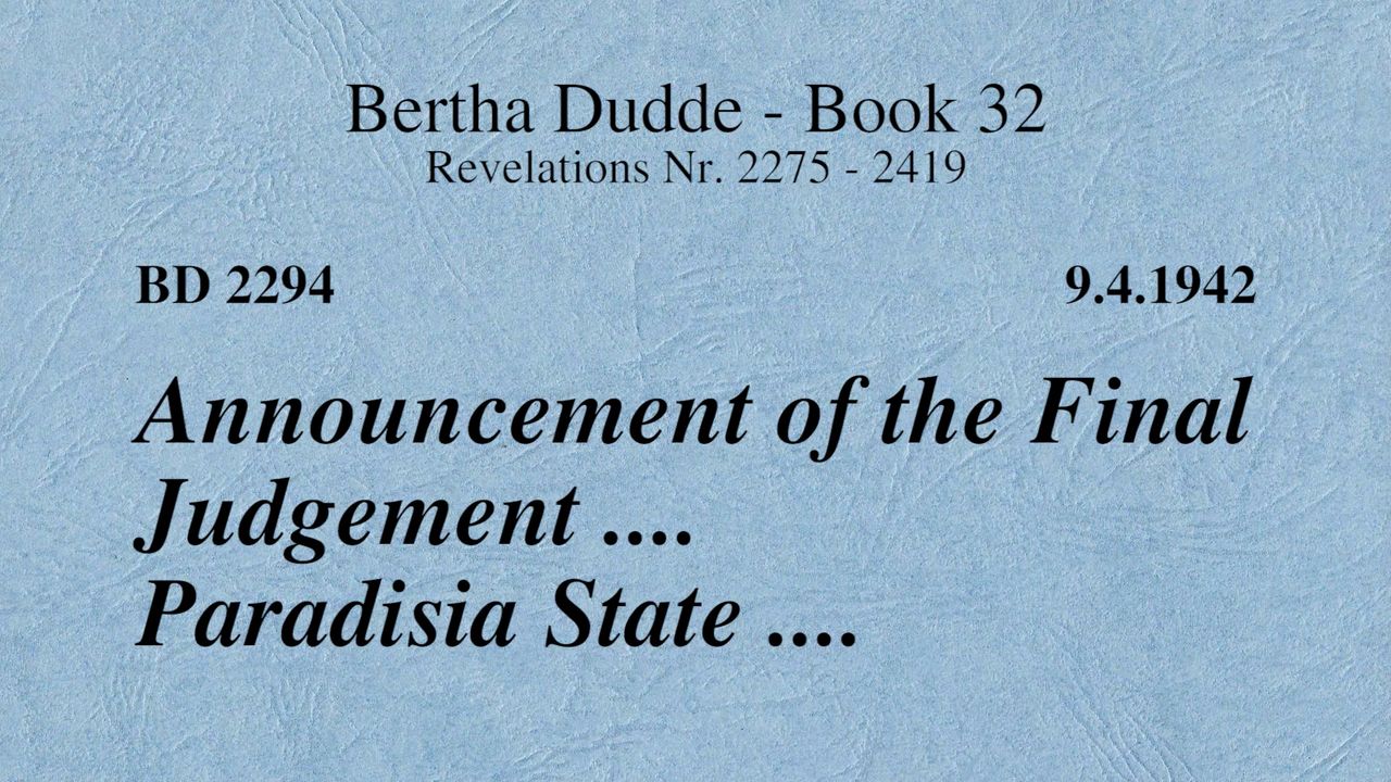 With these words the revelations of God to Bertha Dudde began on June 15, 1937, which found the conclusion on August 17, 1965 with the manifestation 9030 as a seal.