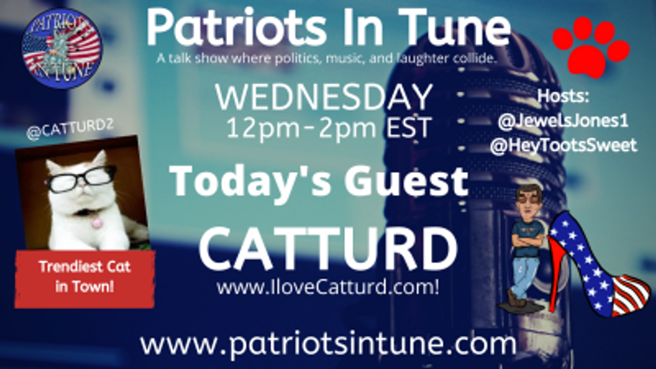 It's Catturd️️️️️ Wednesday on Patriots In Tune!! Everyone's favorite cat, author, social media influencer: Catturd️️️️️/@Catturd2 joins us. Check out his website & his books, "Rabbitskin" & "The Adventures of Cowfart, literally." @ ilovecatturd.com