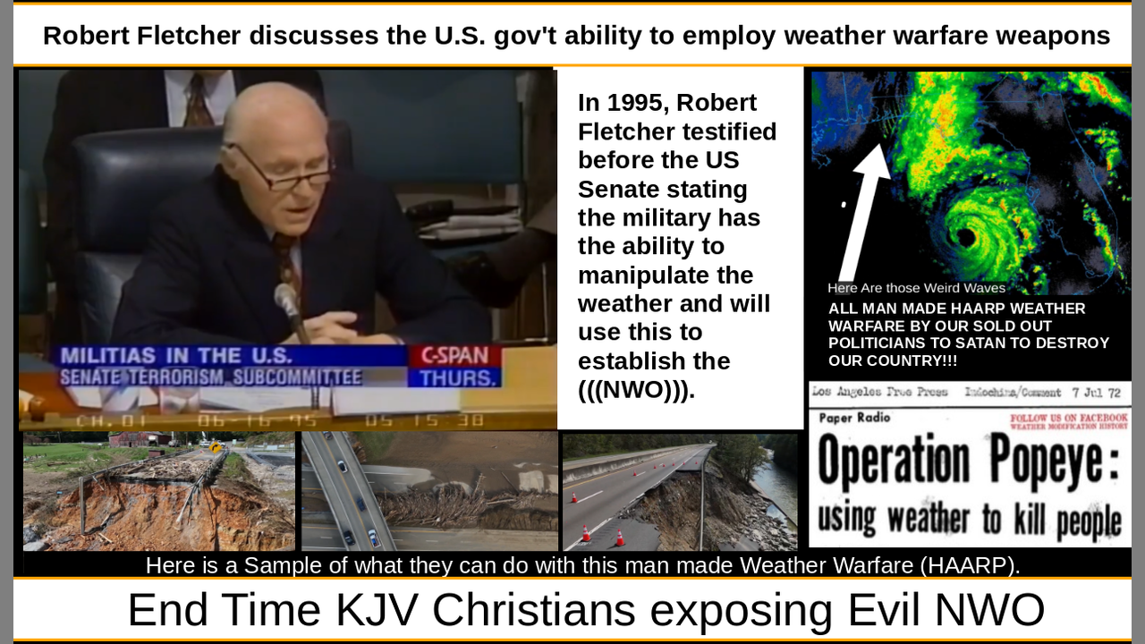 In 1995, Robert Fletcher testified before the US Senate stating the military has the ability to manipulate the weather and will use this to establish the (((NWO))).