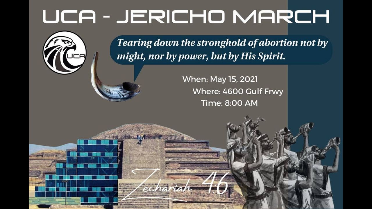 On May 15th, 2021, Urban Conservatives of America will have a worship service - “The UCA Jericho March.” UCA will walk around the Jericho wall of child sacrifice, in one accord, seven times, sounding shofars, praising, and worshipping, followed by the blowing of 7 shofars and a collective shout. They are asking all that can and will to join in worship with them personally, prayerfully, or financially.