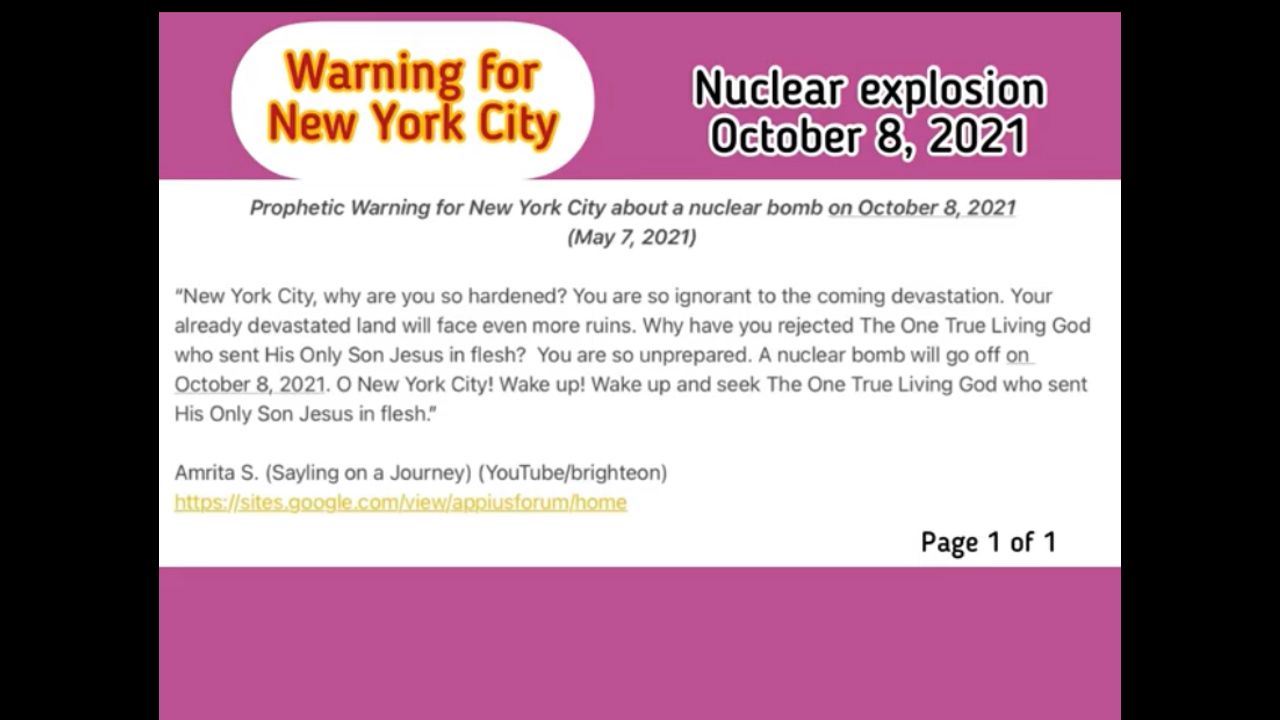 Prophetic Warning for New York City about a nuclear bomb on October 8, 2021