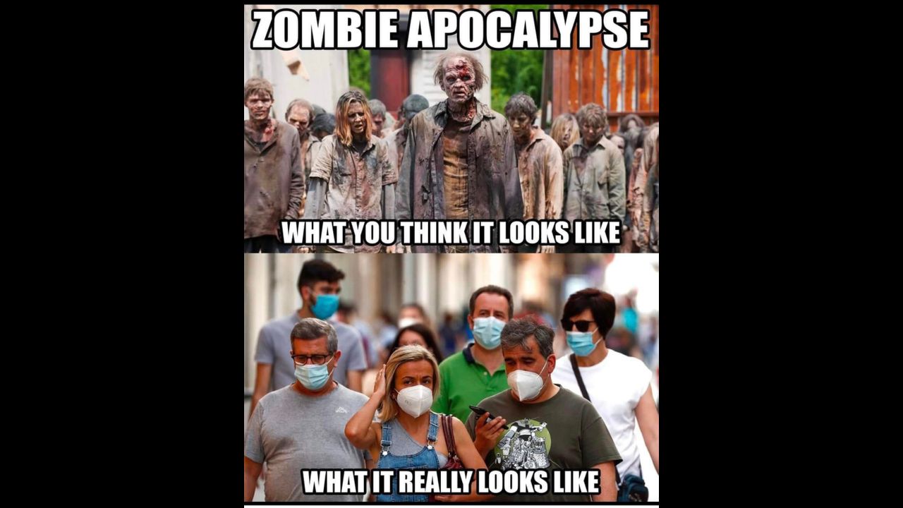 Zombie apocalypse is coming nearer, naked vaccinated people in the public