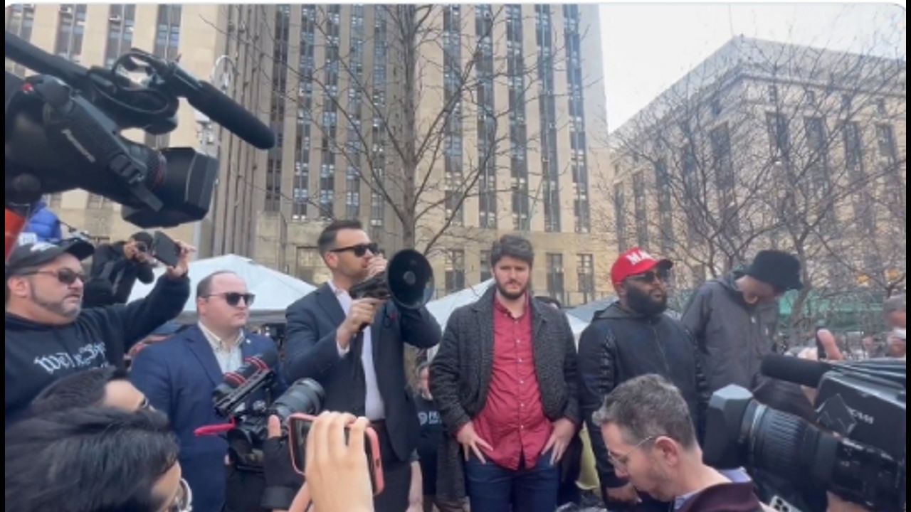 “Why are we here this morning? I’ll tell you why we’re here this morning. Because Joe Biden and the Democrats and the media are terrified of the people of this country. They’re terrified of free Americans. They’re terrified of the voters. They’re terrified of people having a voice,” Posobiec said into a megaphone in front of the court, before laying into Manhattan District Attorney Alvin Bragg’s office for pushing for a gag order: