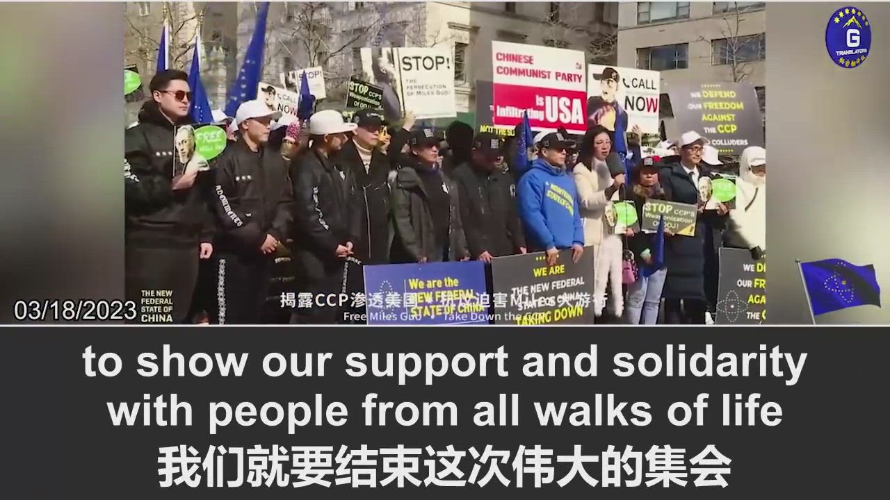 【#立即释放郭文贵先生】03/18/2023 新中国联邦人和来自美国及世界的支持者站在一起,要求立即释放郭文贵先生,郭先生的被捕开启了一次美国和中共脱钩的新独立运动!
