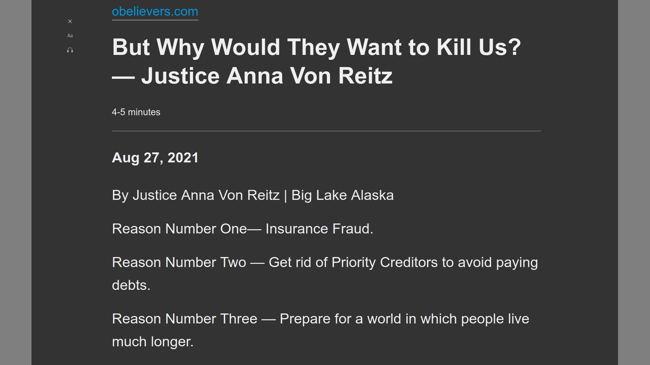 But Why Would They Want to Kill Us? — Justice Anna Von Reitz