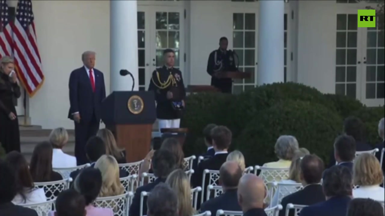 Erika Kirk fights back tears as she accepts the Medal of Freedom for Charlie