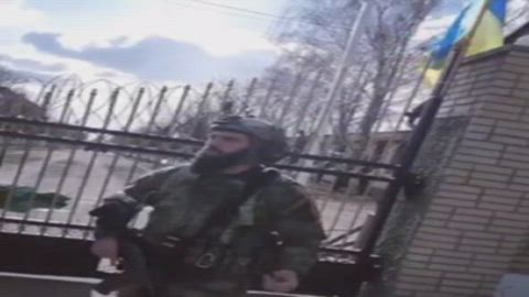 FSVNG Republic of Chechnya on the territory of the base of the 4th Operational Brigade of the National Guard of Ukraine in Gostomel in the Kiev region. Changes Flag. 022622
