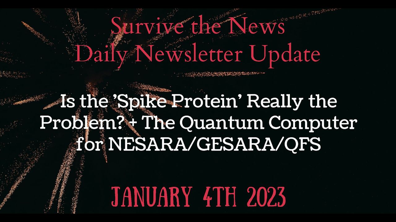 Visit: https://www.survivethenews.com/weekly-update-1-4-22-is-the-spike-protein-really-the-problem-the-quantum-computer-for-nesara-gesara-qfs/ to view our latest update & Signup for weekly updates @ https://survivethenews.com/newsletter