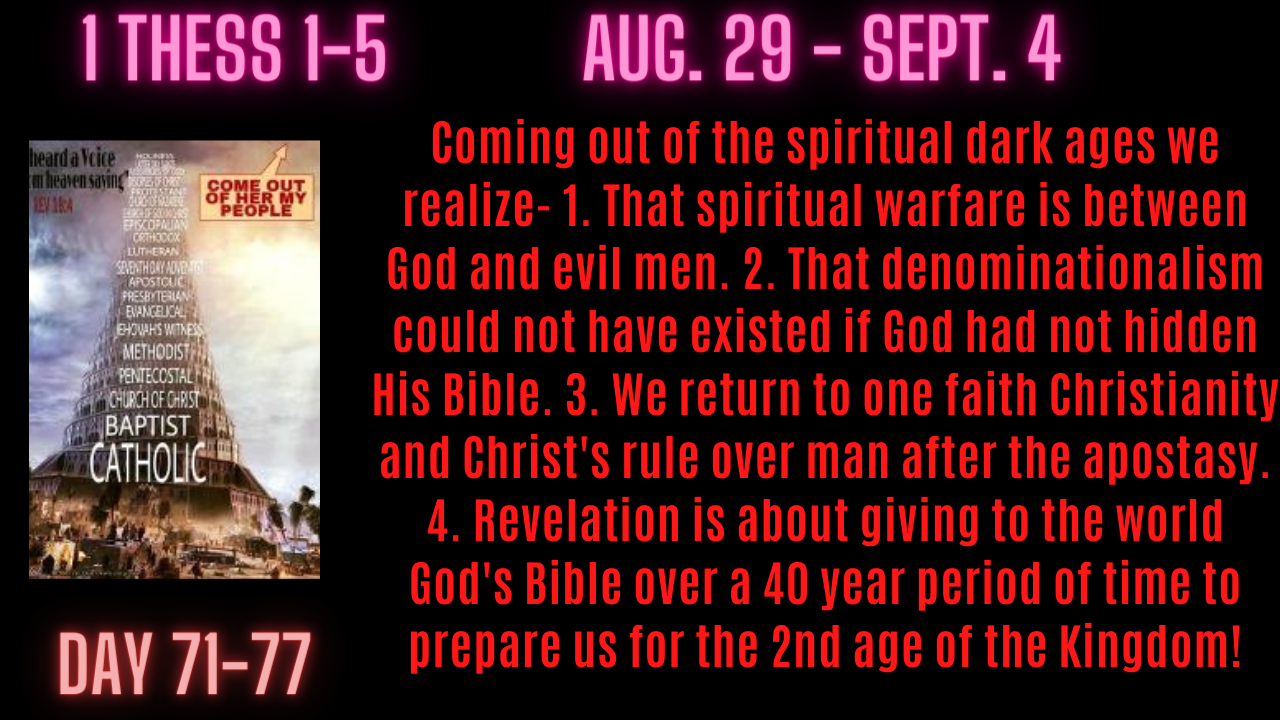 That wisdom commands us to stop utilizing the bibles and faith systems of men and return to Christianity the perfect faith system from God which will save us and free us from every wind of doctrine of men John 8:32; Acts 17:30; 2 Thess. 2:3-11. Grace has always been available for the righteous in the spiritual dark ages Acts 17:30; Rom. 5:13, however, we cannot realize salvation and freedom until the Lord resumes His reign on the earth as it is in heaven!