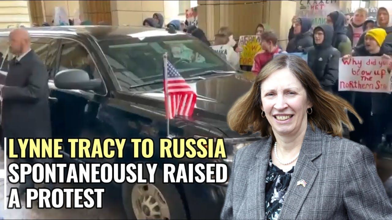 The arrival of United States Ambassador Lynne Tracy to meet with Russian Deputy Foreign Minister Sergei Ryabkov was greeted by protesters. They appeared with placards denouncing Washington's international policies.