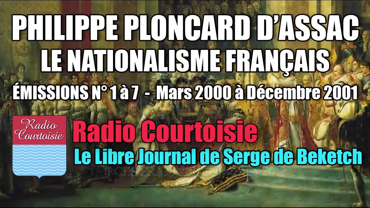 Il s'agit de 7 interventions que Philippe Ploncard d'Assac a faites à l'antenne de Radio Courtoisie sur le thème du Nationalisme Français entre le 22 Mars 2000 et le 5 Décembre 2001. Il a tenu ces entretiens avec Serge de Beketch à l'occasion de la sortie de son livre Le Nationalisme Français (2000). Il ne développe pas le "nationalisme" en général mais esquisse ce qui fait la spécificité française : l'origine mystique de la France et sa vocation de "Fille aînée de l'Eglise".