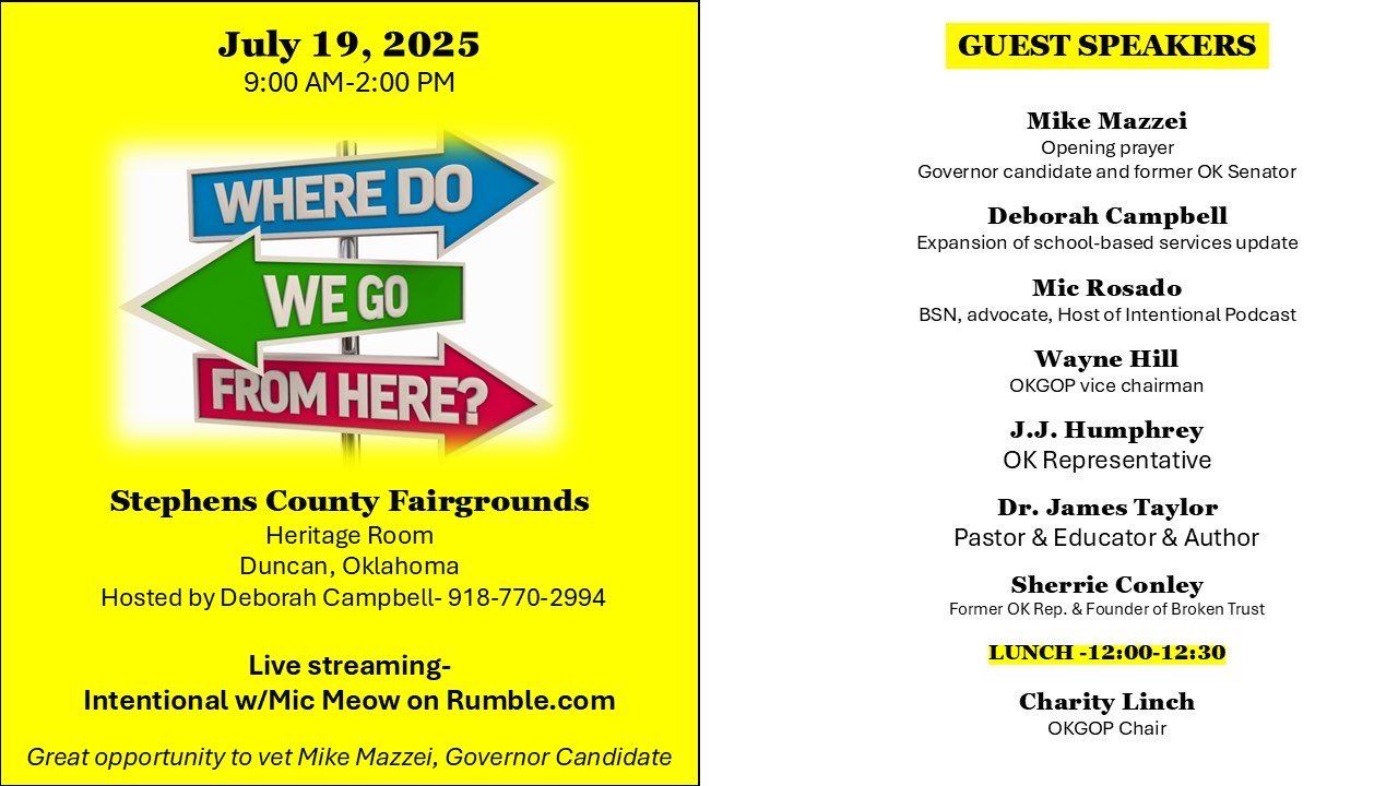 This video features the OKGOP Vice Chair, Wayne Hill. It was recorded in Duncan, Oklahoma on 7-19-25 at the "Where Do We Go From Here" event.