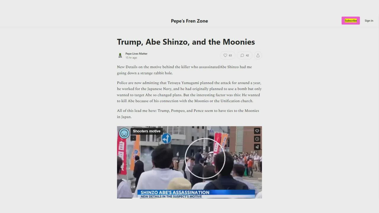 Pepe’s Fren ZoneTrump, Abe Shinzo, and the Moonies - by Pepe Lives Matter (substack.com)
