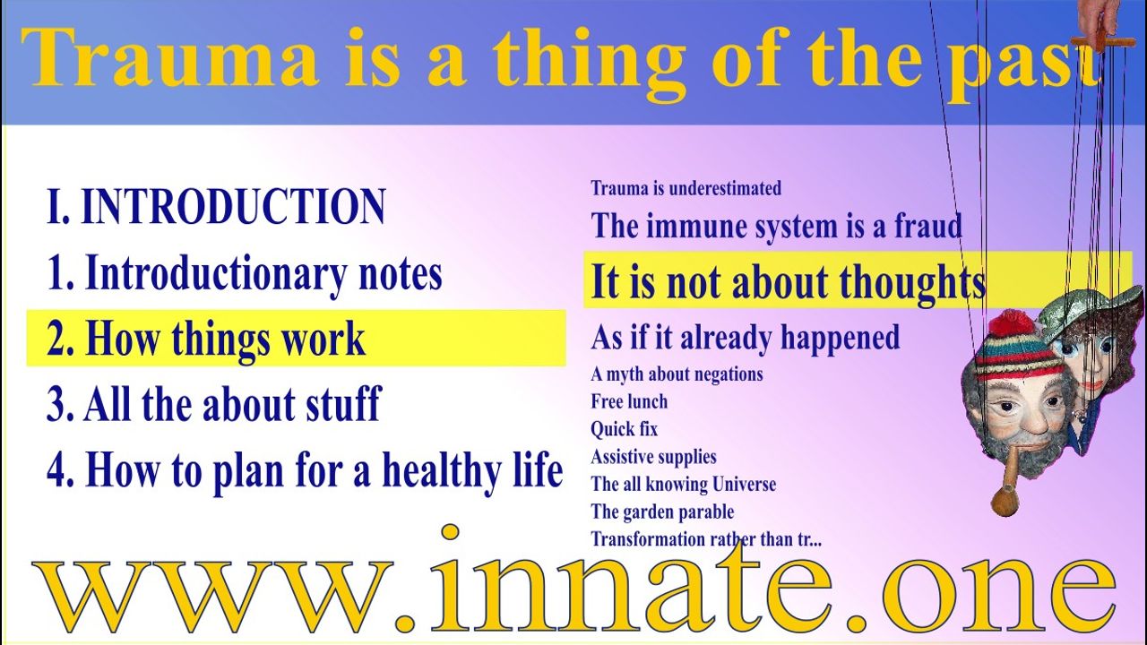 Even processes that have been paralysed for decades—karmic topics as well—may be found, understood and brought to a happy end. To restrict the use of the term trauma to broken legs and war veterans terrible experiences blinds us and blocks us from becoming healthy and happy. As it turns out, correcting one tiny word from your childhood may be a game changer. We simply need a tool to find the essence of it and a tool to mend it with. This is the INNATE Method.