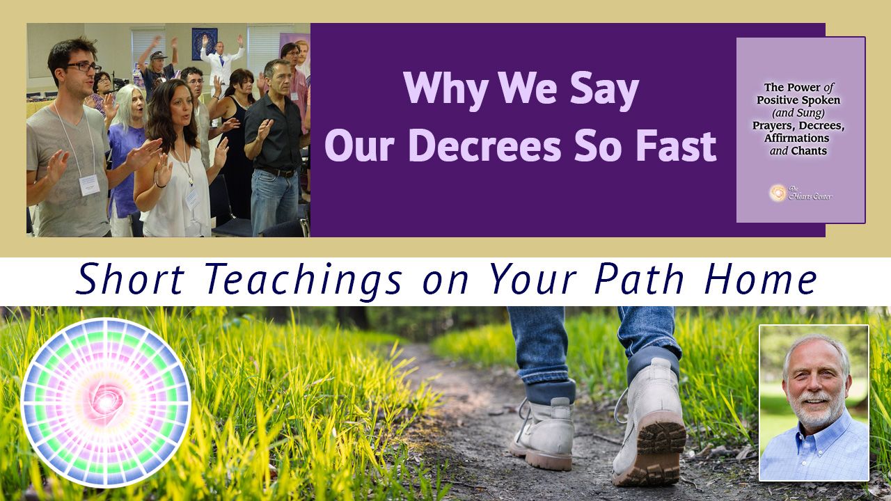 https://www.heartscenter.org - David Christopher Lewis discourses on why The Hearts Center community says their prayers so fast at times. He says that the decrees are sometimes done quickly for the acceleration of the light. The energy being invoked then draws this light into a wider area of action, which allows an energetic opportunity to affect all life. The impact is therefore more profound to transform the Earth.