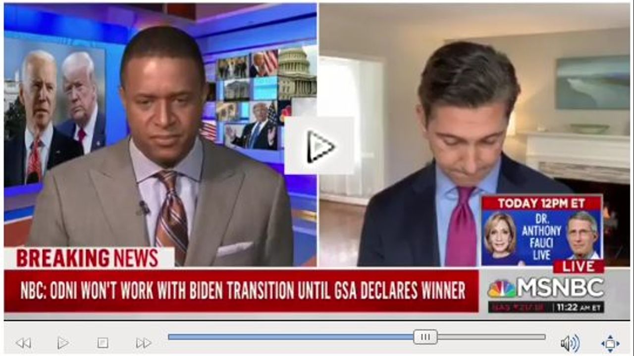 UPDATE: I reject the tweet this guy tweeted explaining that it was a "loss of feed", no, at about this time, when this was fresh, Pompeo really did say there will be a smooth transition to another Trump administration. This IDIOT, who did not keep composure on national television, saw that and knew it was GAME OVER.
