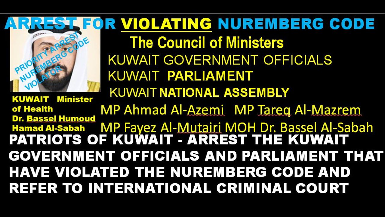 TAKE ACTION KUWAIT PATRIOTS; ARREST THE NUREMBERG CODE VIOLATORS; THE COUNCIL OF MINISTERS; KUWAIT PARLIAMENT; ALL KUWAIT MP s AND THE KUWAIT GOVERNMENT LEADERSHIP.