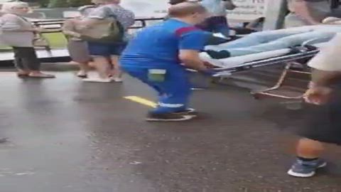 PEOPLE IN LINE FOR KILL SHOT WATCH ONE GET CARRIED OUT ON A STRETCHER. NOT ONE LEAVES THE LINE