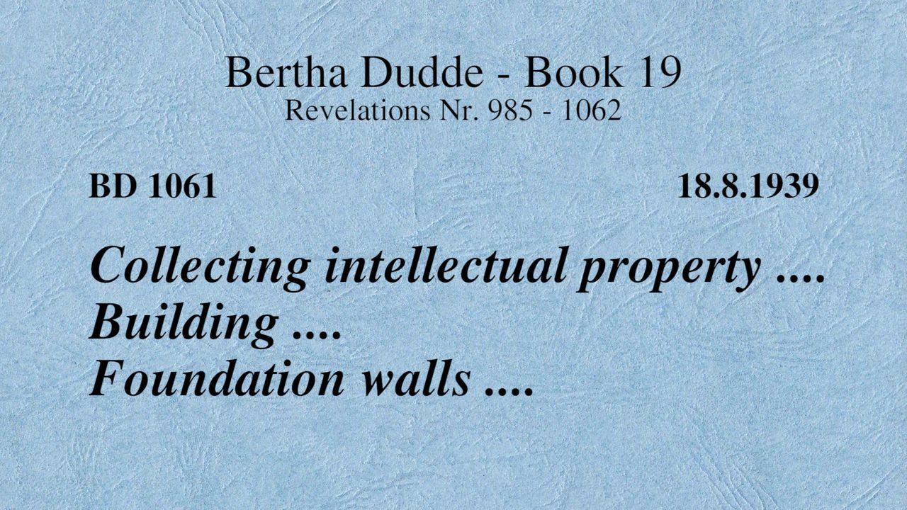 BD 1061 - COLLECTING INTELLECTUAL PROPERTY .... BUILDING .... FOUNDATION WALLS ....
