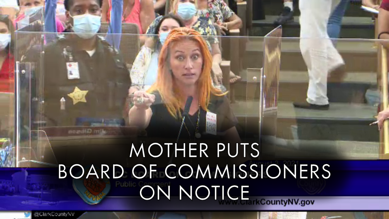Mother Stephanie Kinsley put the Clark County (Nevada) Board of Commissioners on notice with their mask mandates of children, vaccines, tyranny