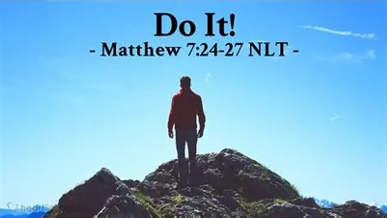 24 “Therefore everyone who hears these words of mine and puts them into practice is like a wise man who built his house on the rock. 25 The rain came down, the streams rose, and the winds blew and beat against that house; yet it did not fall, because it had its foundation on the rock. 26 But everyone who hears these words of mine and does not put them into practice is like a foolish man who built his house on sand. 27 The rain came down, the streams rose, and the winds blew and beat against that house, and it fell with a great crash.” Matthew 7:24-27