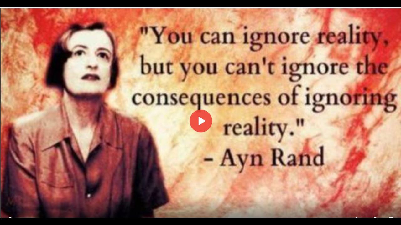 "You Can Ignore Reality But You Can't Ignore The Consequences Of Ignoring Reality". Ayn Rand