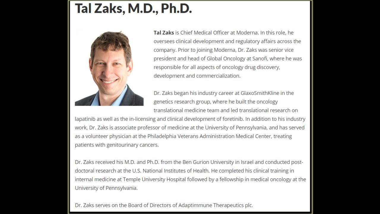 Tal Zaks: Moderna chief medical officer Hacking the software of life; Published by عراقي في فرنسا; YouTube; Date published: March 16, 2021; Date of website access: September 9, 2021.