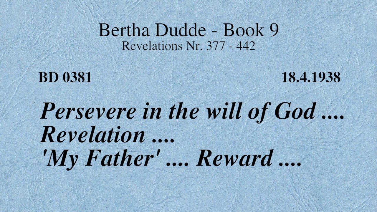 BD 0381 - PERSEVERE IN THE WILL OF GOD .... REVELATION .... "MY FATHER" .... REWARD ....