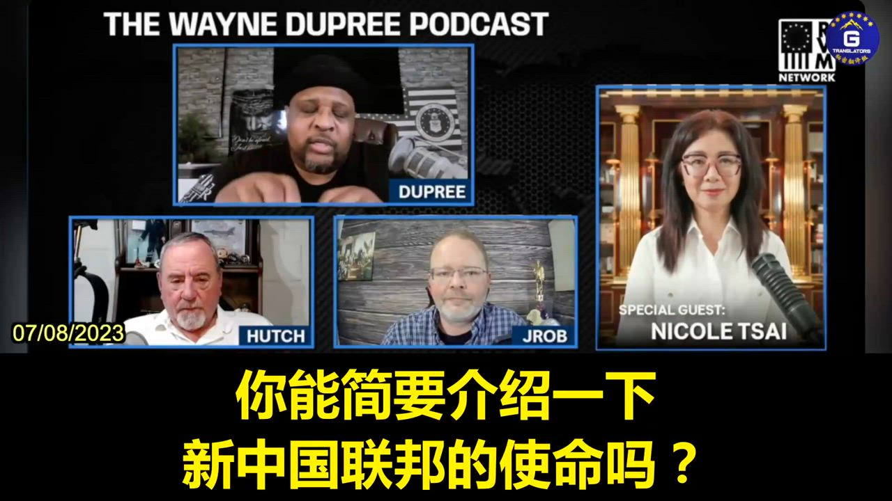 07/08/2023 妮可作客《 Wayne Dupree Show》节目:中国人民没有选举权,没有拥枪权,中共政府不能代表中国人民。在中共国,即使一把菜刀也需进行登记并用链子锁住,确保老百姓不能用刀进行自卫或推翻中共非法独裁政权。郭文贵于2020年6月4日成立了新中国联邦,为了自由而与暴政作斗争。