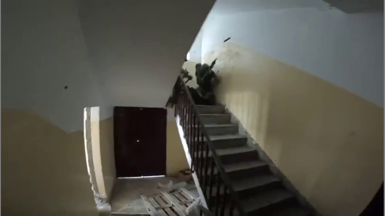 Never seen footage shows close-range clashes between Israeli Occupation forces and Palestinian Resistance fighters inside a building in Khan Yunis.