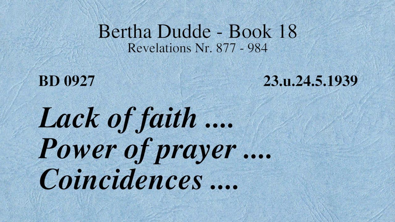 BD 0927 - LACK OF FAITH .... POWER OF PRAYER .... COINCIDENCES ....