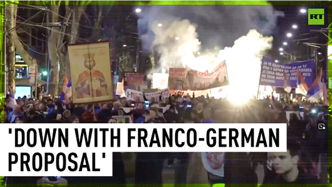 Thousands of protesters take to the streets of Belgrade to voice their outrage over the EU-backed deal to normalize ties between Kosovo and Serbia