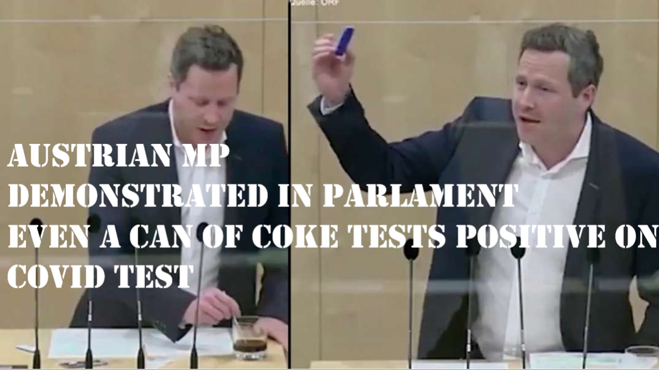 An Austrian parliamentary member demonstrated the defectiveness of the governmentâs Covid-19 tests by showing how a glass of coke yields a positive result.