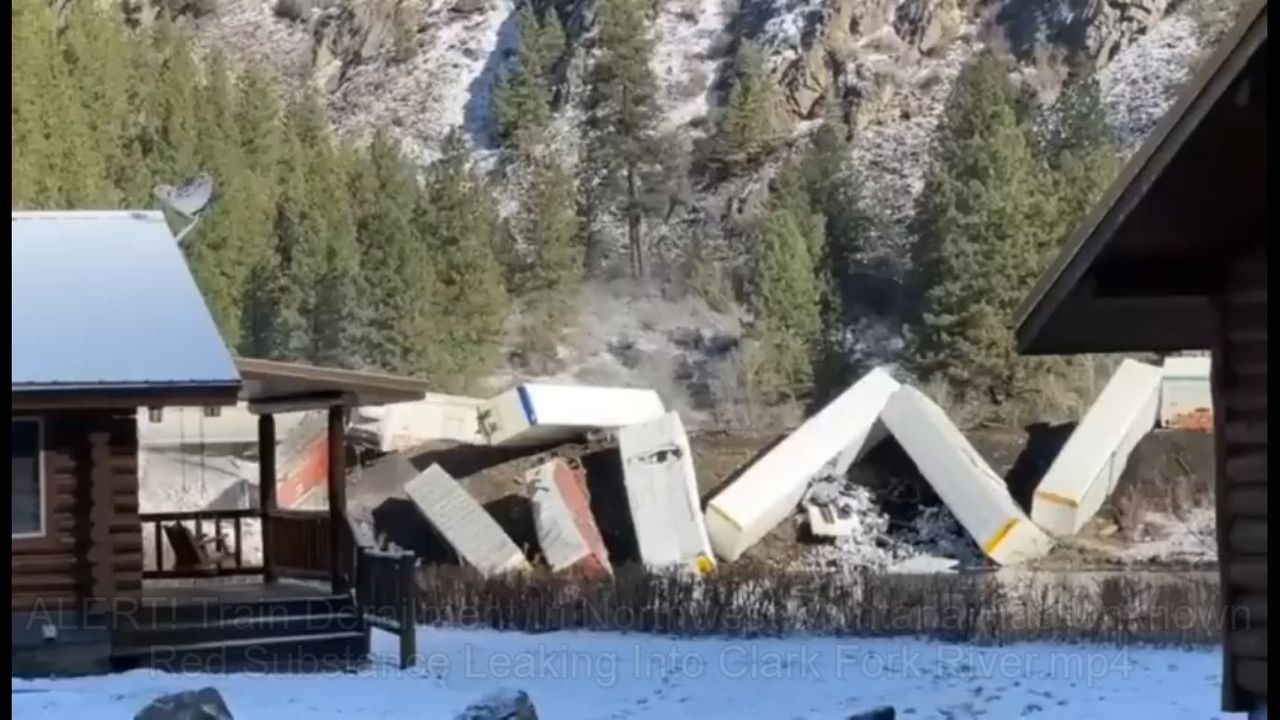 - Train derails in Northwest Montana — Unknown red substance is purportedly leaking in the Clark Fork River 200 miles north west of Bozeman..This is a heads up alert for Anyone downstream from this derailment! #breaking #News #Montana #trainderailment