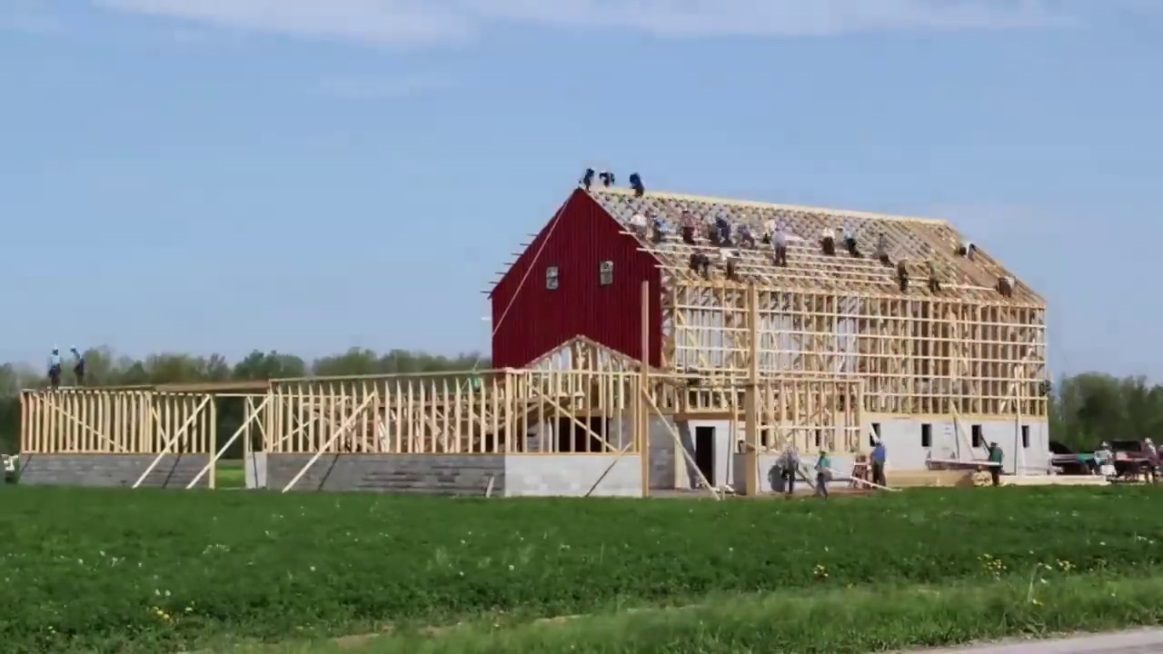 Awe-inspiring timelapse of the Amish building two barns in a single day.
