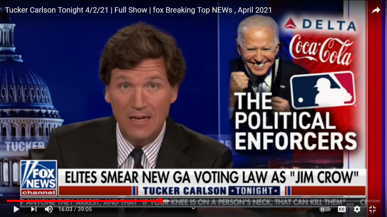 ANOTHER GREAT SHOW DEALING WITH THE BIDEN, LEFTIST DEMOCRAT'S LIBERTY THREATENING MADNESS NOW RUNNING RAMPANT HERE:VOTE FRAUD, GEORGIA ELECTION RULES, COKE (THE DRINK) SUCKS UP TO CHINA, VACCINES, DELTA AIRLINES, ACLU.