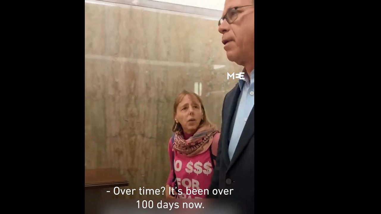 Activists question and urge US senators to call for a ceasefire in Gaza