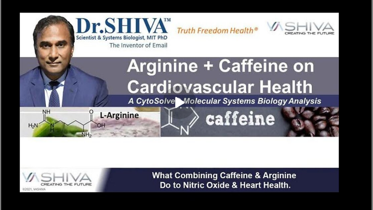 In this presentation, Dr.SHIVA Ayyadurai, MIT PhD, Inventor of Email, Scientist, and Engineer, analyzes Arginine + Caffeine effects on Cardiovascular Health. Full Blog Post: https://vashiva.com/dr-shiva-arginine-cardiovascular-health-a-cytosolve-analysis/