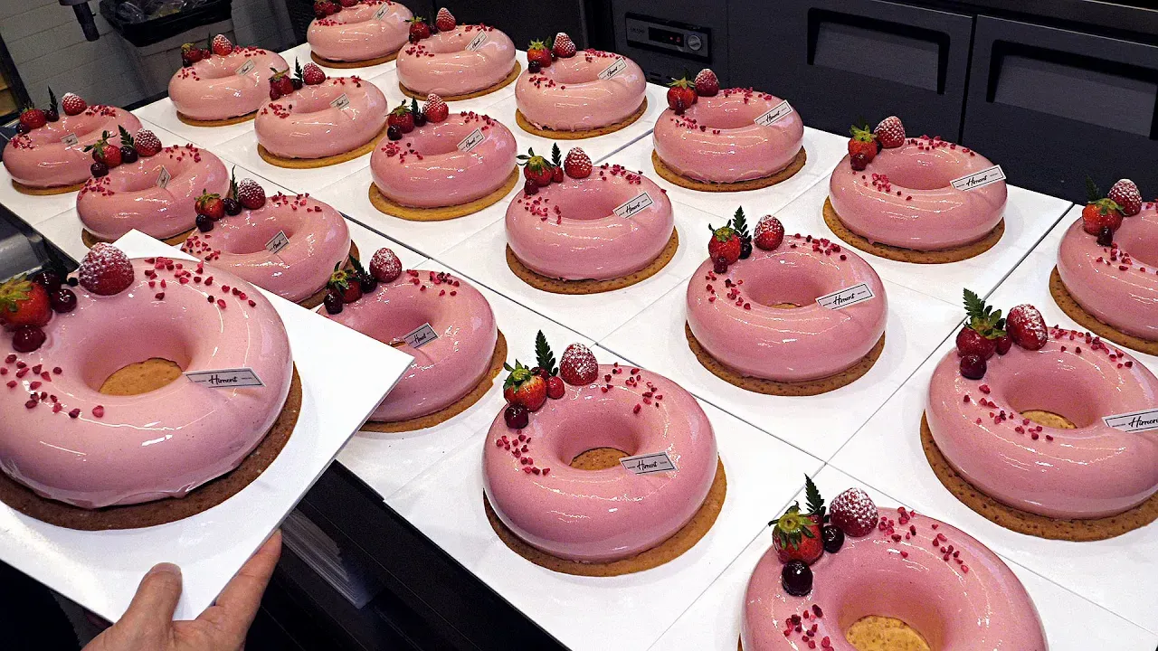 Beautiful ! Giant Ring Raspberry Mousse Cake / Food Factory