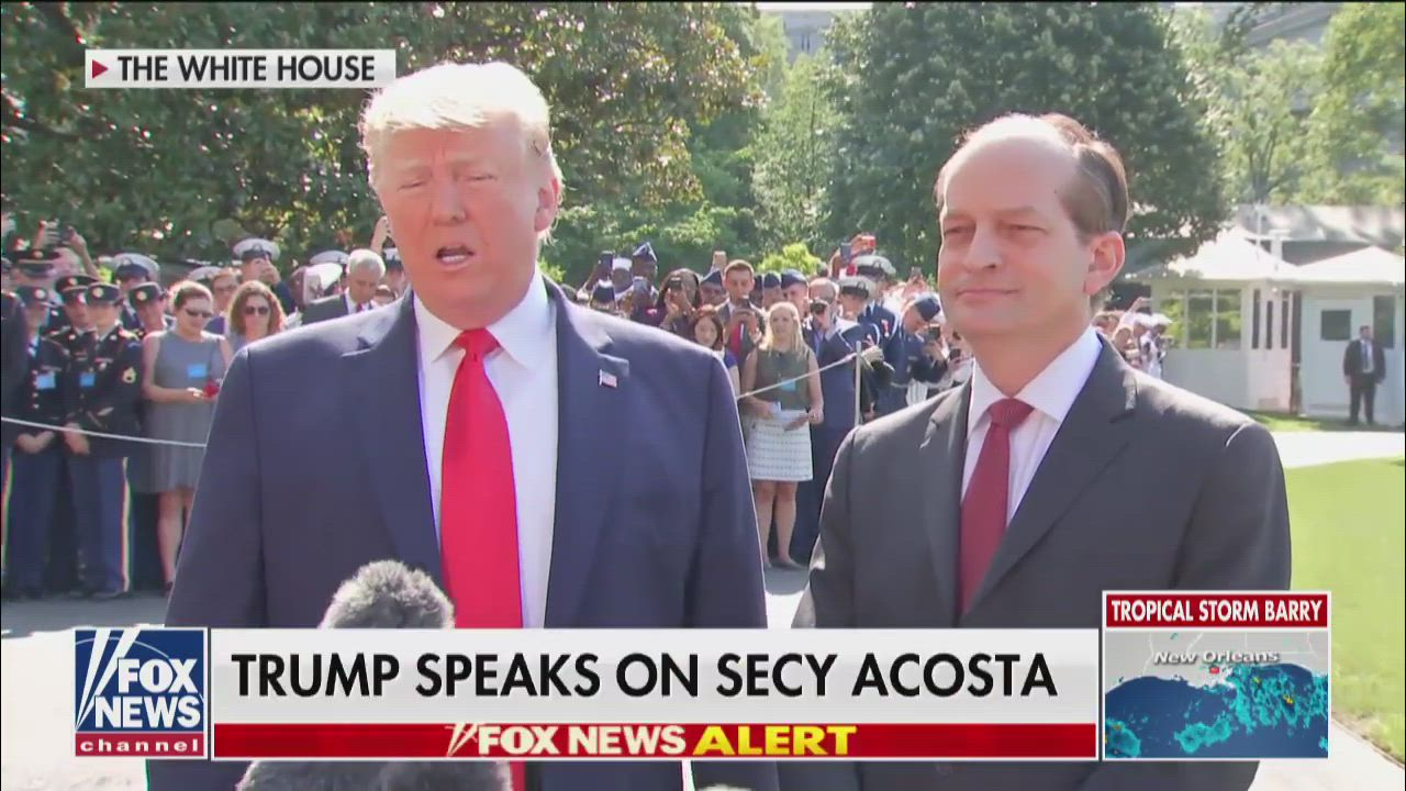President Trump praises outgoing Secretary of Labor Alexander Acosta outside the White House after the Cabinet member announces his departure amid questions over his role in the Jeffrey Epstein plea deal. #FoxNews