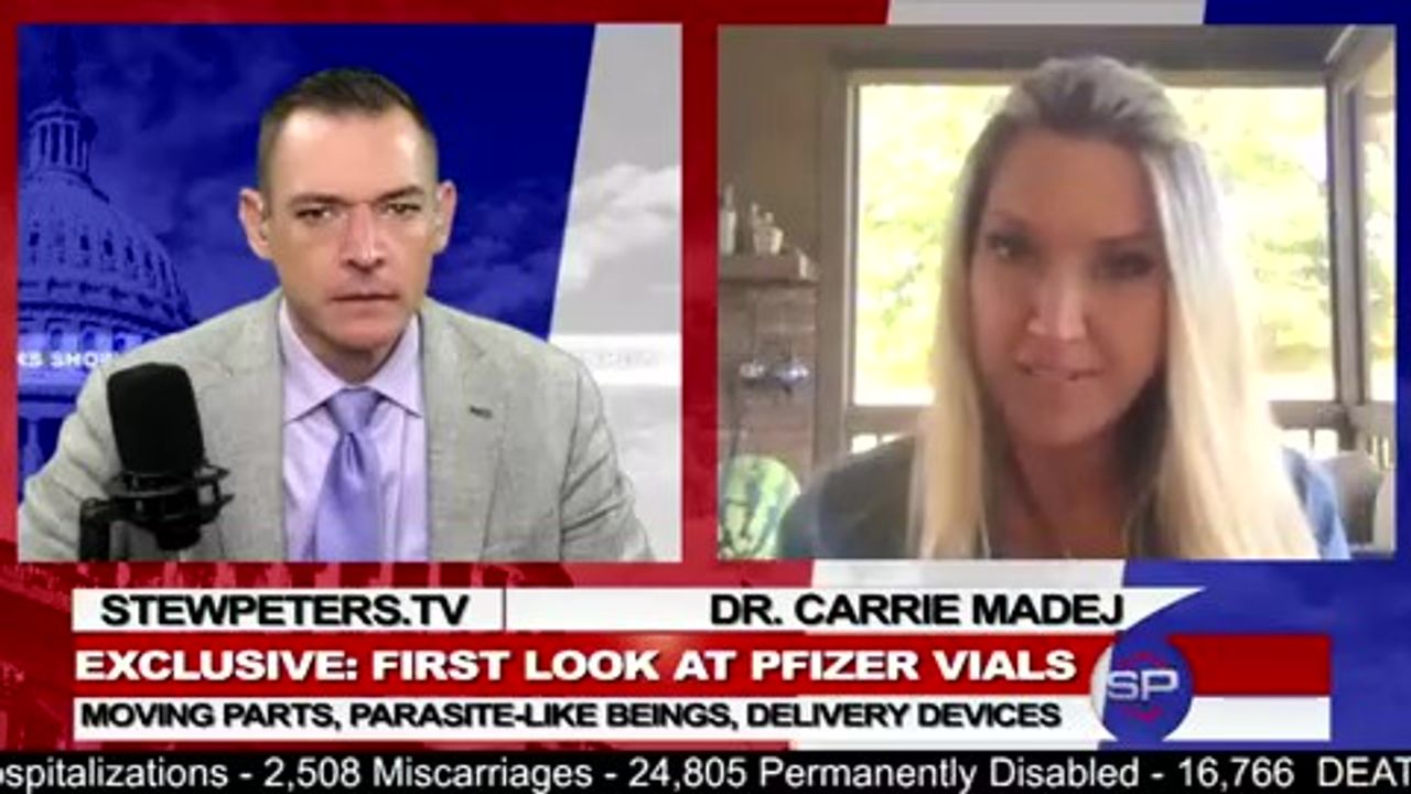 n this MUST-SEE interview Dr. Carrie Madej returns to "The Stew Peters Show" with some shocking images from Pfizer COVID vaccine vials. These bioweapon shots need to be stopped, IMMEDIATELY! Call your elected representative, email them these images, and DO NOT STOP until we get ACTION!